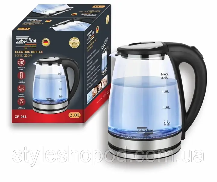 Скляний електрочайник з підсвічуванням Zepline ZP-986 (2 л) (2 200 Вт)