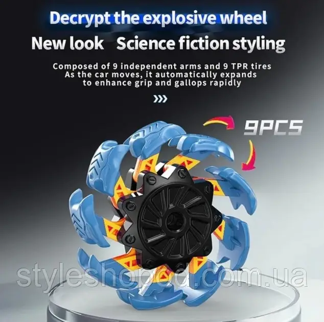 ✔ Інноваційні колеса – складаються з 9 незалежних елементів і автоматично розширюються під час руху, покращуючи зчеплення.
